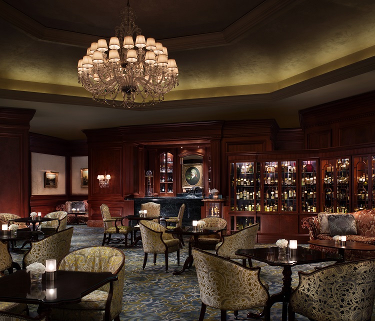 ロビーの豪華なペルシャ絨毯やチェコ産のクリスタルシャンデリア、イタリアからの大理石が敷き詰められた床、暖炉などが醸し出す貴族の邸宅のような空気感。