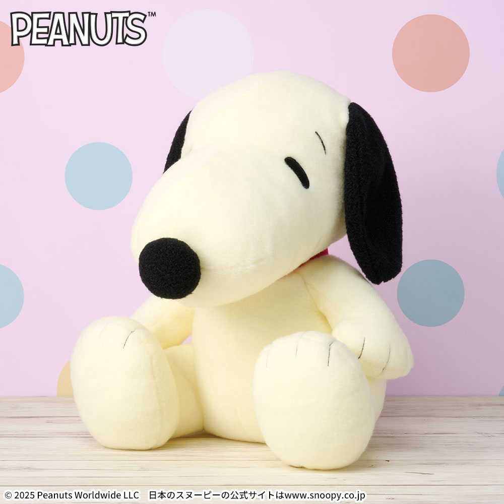 「スヌーピー」のふんわりしたとても柔らかい生地を使用した大きなサイズのぬいぐるみが再登場。