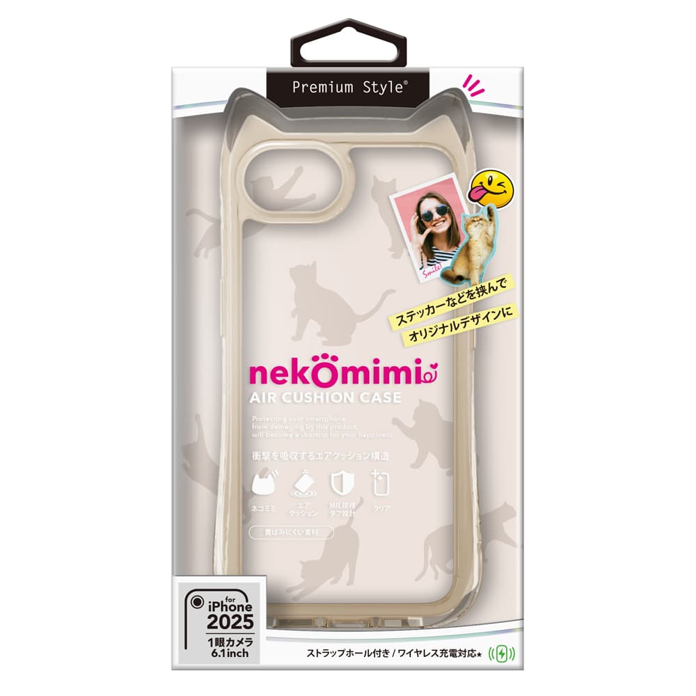 iPhone 16e用 ネコミミ エアクッションケース ベージュ