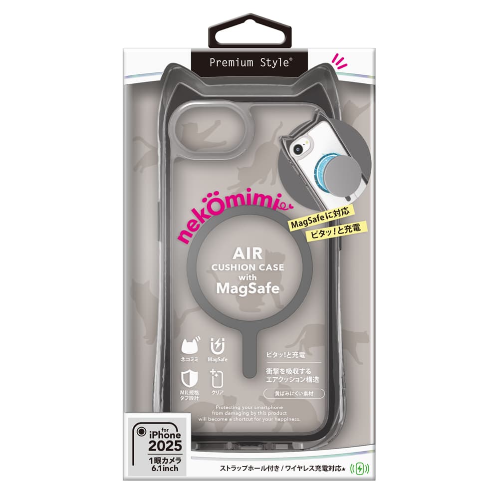 猫耳デザインのiPhone 16e用エアクッションケースは、MagSafe対応のバージョンも展開。