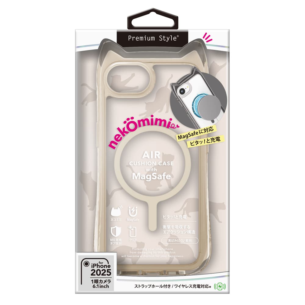 iPhone 16e用 MagSafe対応 ネコミミ エアクッションケース ベージュ