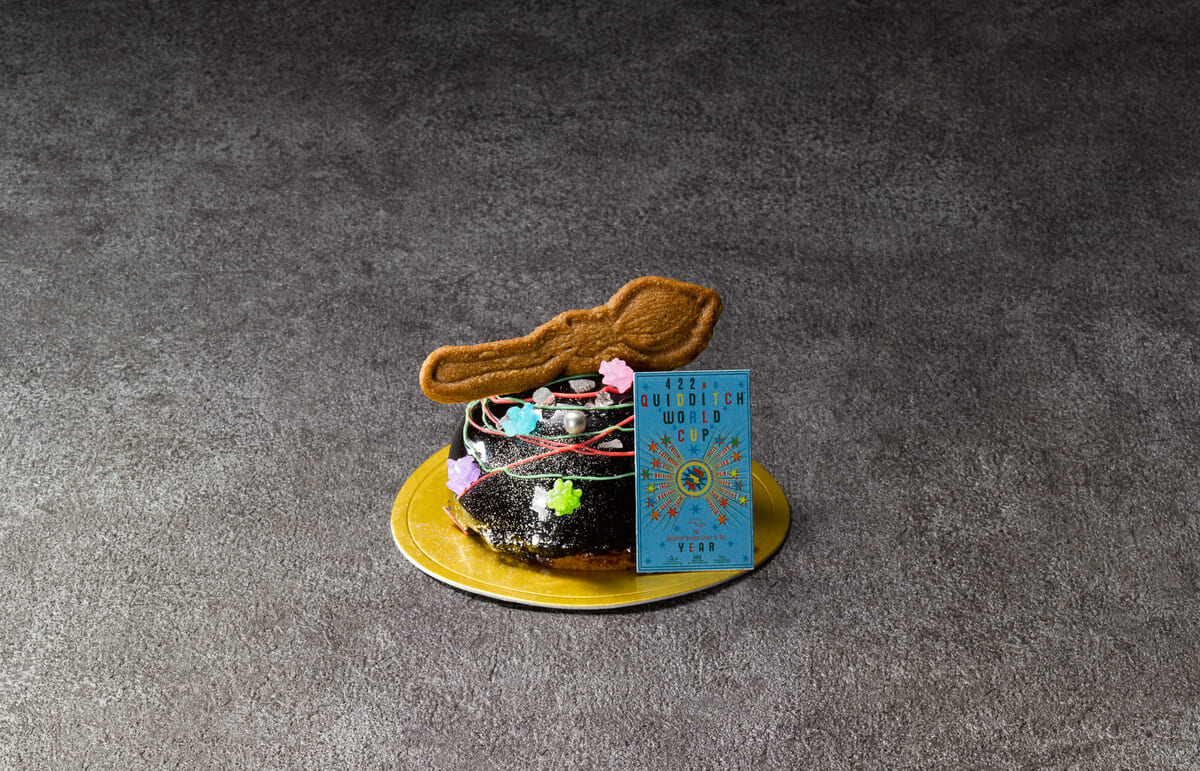 魔法ワールドをテーマにしたスイーツが並ぶ「フロッグカフェ」にて提供される「クィディッチワールドカップムースケーキ」