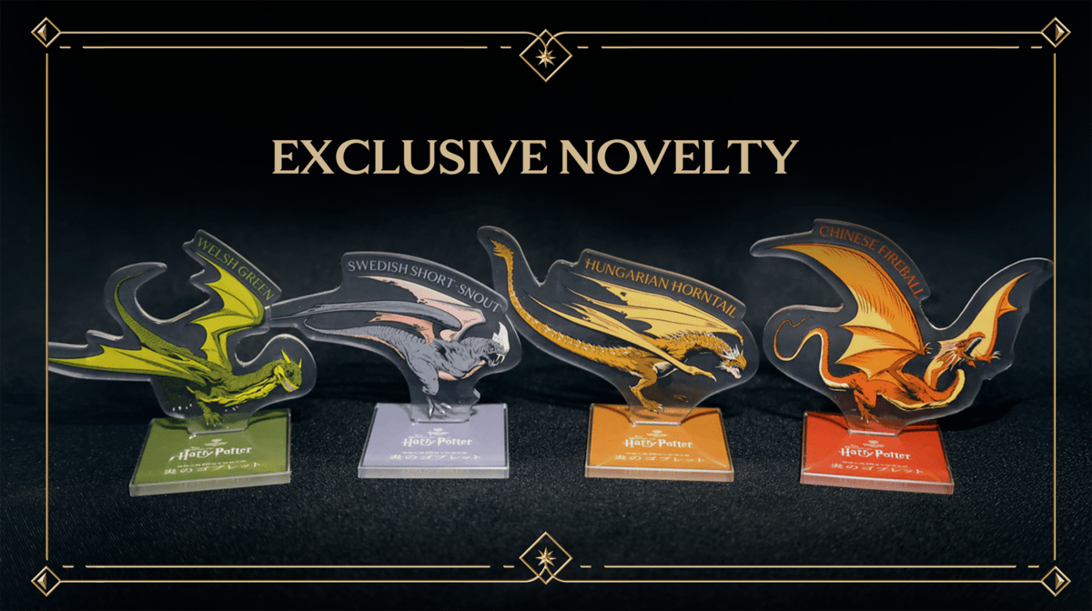 特別企画「炎のゴブレット」期間中に来場されたニュースレター会員限定特典として、三大魔法学校対抗試合の第一の課題で登場した「ドラゴンのアクリルスタンド」をプレゼント。