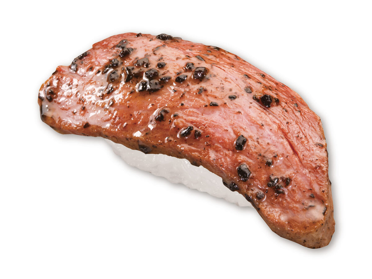 黒トリュフの上品な香りと濃厚な味わいがローストビーフの旨みを引き立てる一貫です。