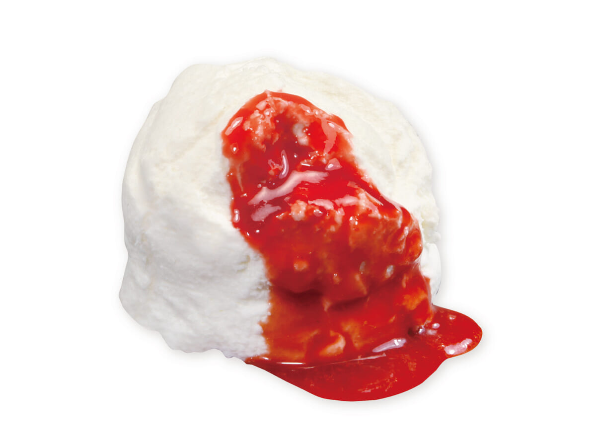 ストロベリー濃縮果汁を加え、甘さと酸味のバランスが良いイチゴソースをかけて味わうスイーツです。