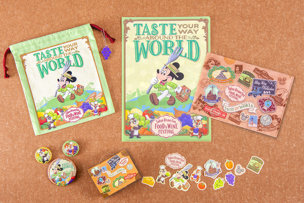 「東京ディズニーシー・フード&ワイン・フェスティバル」の開催に先駆け「ミッキーマウス」やさまざまな食材が描かれたグッズが登場。