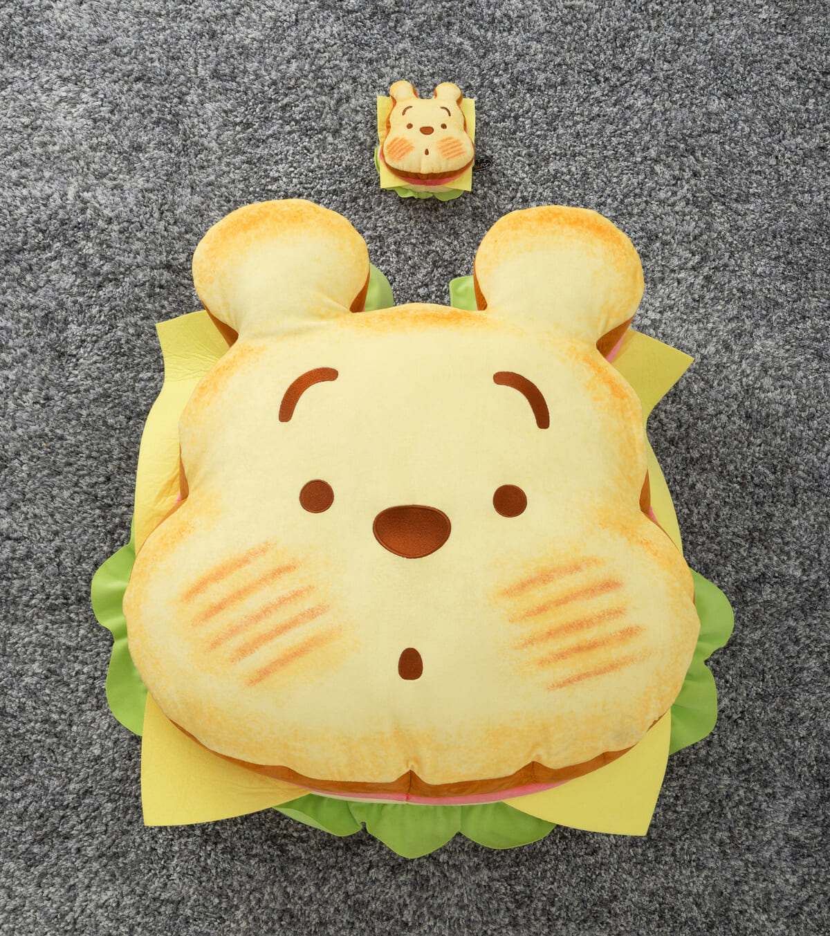 「ぬいぐるみS サンドウィッチ プー」同様、サンドウィッチならではのパンの焦げ目や側面の具材部分は様々な質感の生地を組み合わせることで再現され、その姿はまさに大きいサンドウィッチ!