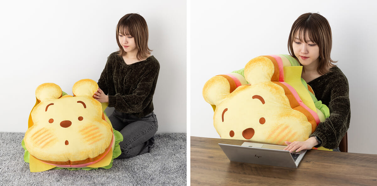 今回発売される「ディズニーキャラクター Nuiパン すごく大きなサンドウィッチクッション プー」は、第1弾のラインナップの中から、ふわふわの触感が際立つサンドウィッチのパンをベースにグッズ化。