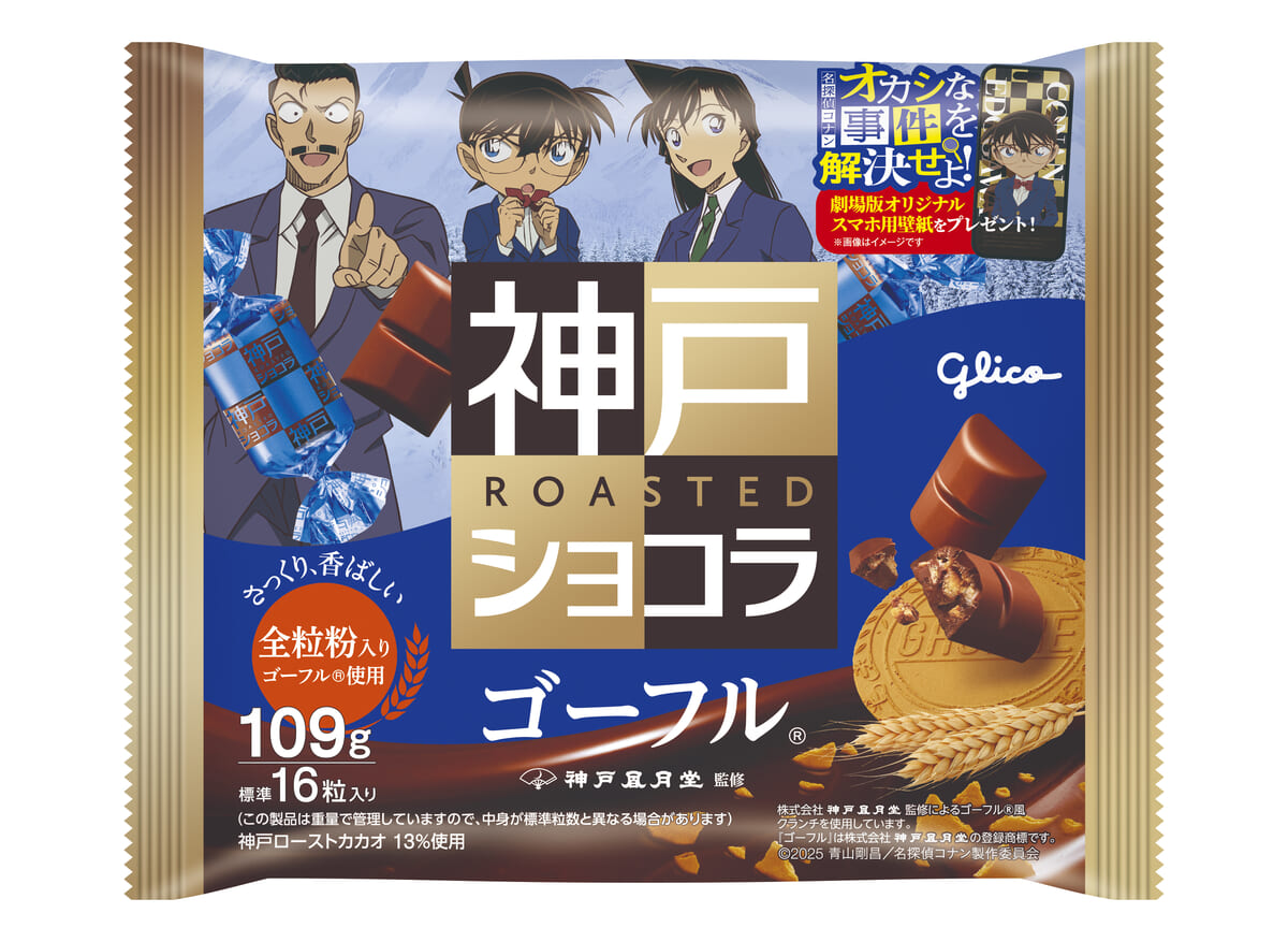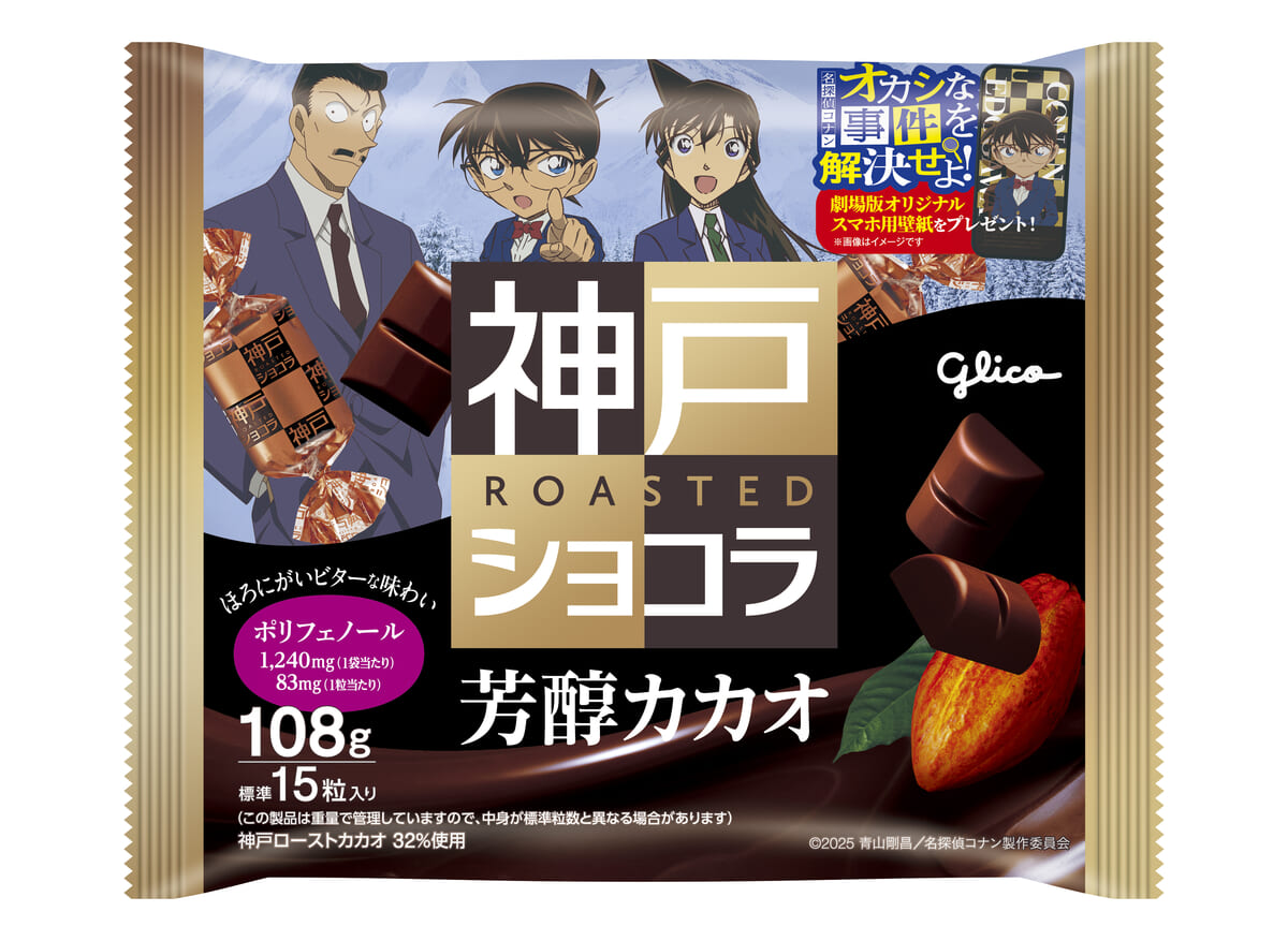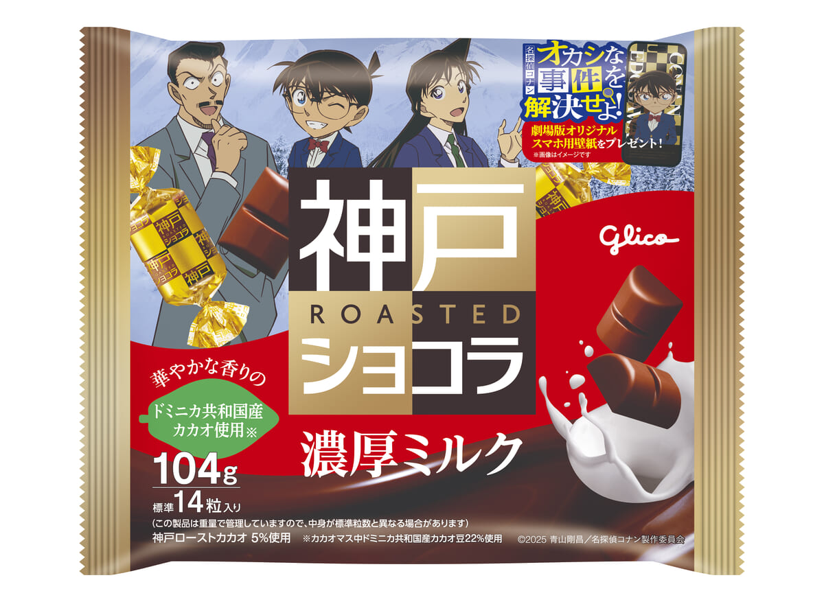 「江戸川コナン」「毛利蘭」「毛利小五郎」がプリントされた「神戸ローストショコラ<濃厚ミルク>」