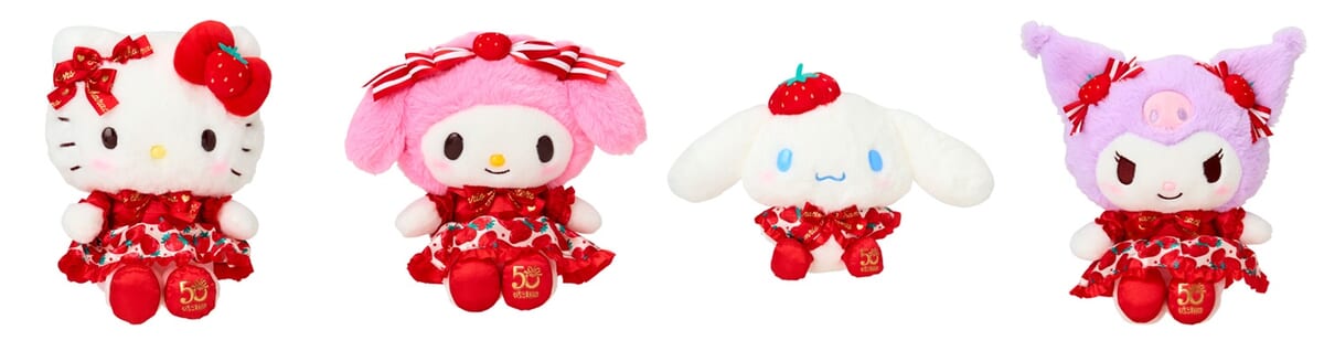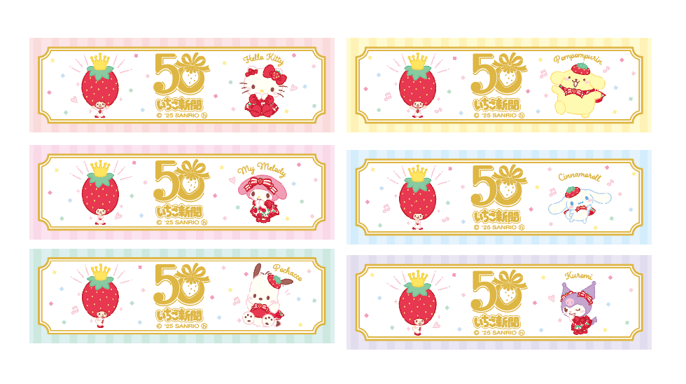 50周年を記念し、いちごのドレスや小物を身につけたキャラクターたちが50周年を華やかにお祝いしている「いちご新聞50周年シリーズ」が登場。