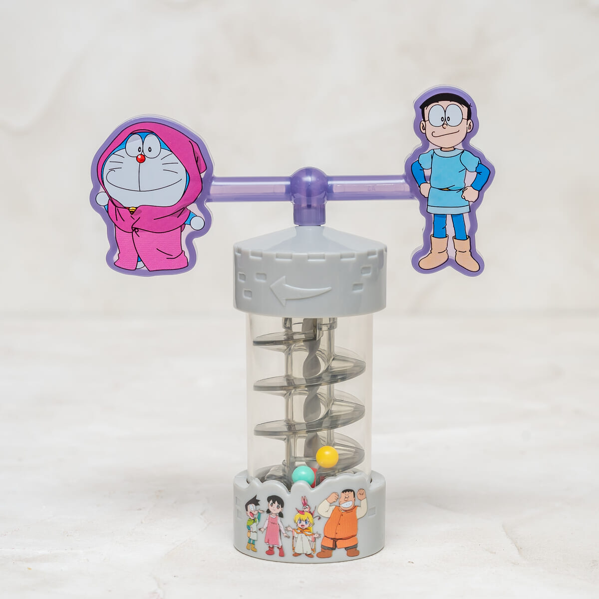 「のぼっておりて!ドラえもんのビーズタワー」は、ボールが上下するタービンのおもちゃ。