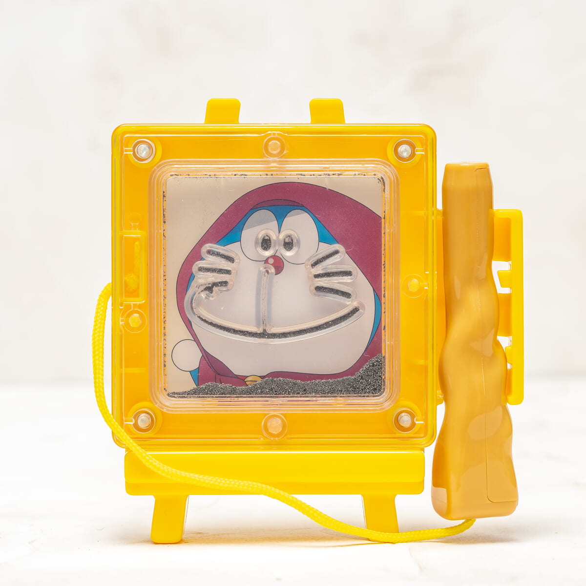 ステッキを使って砂鉄を運び、笑顔の「ドラえもん」の顔を完成させて遊ぶおもちゃです!