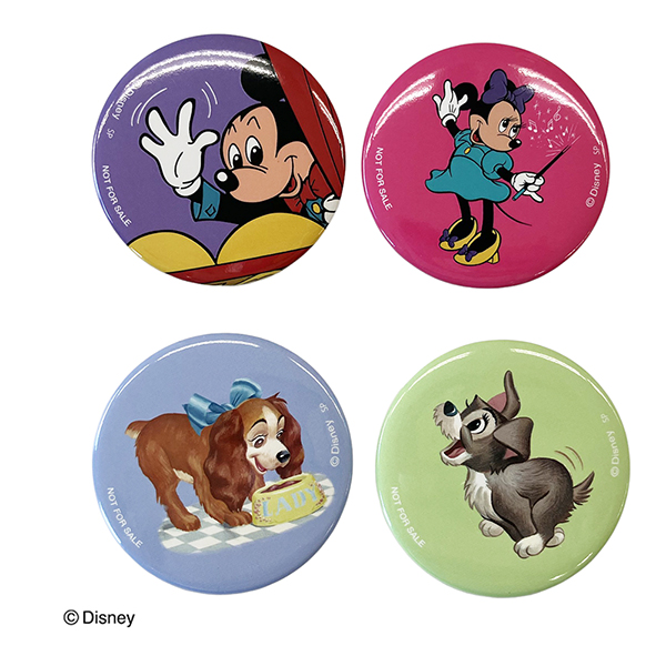 ディズニーグッズを税込み2,200円以上購入された方には、ディズニーデザインの非売品缶バッジ全4種から1会計につき1つランダムで、