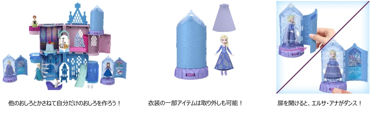 マテルが展開する、ワクワク感を味わえるシリーズ初のシークレットトイ「アナと雪の女王 かさねるおしろシリーズ!エルサ・アナとちいさなダンスホール」が登場。