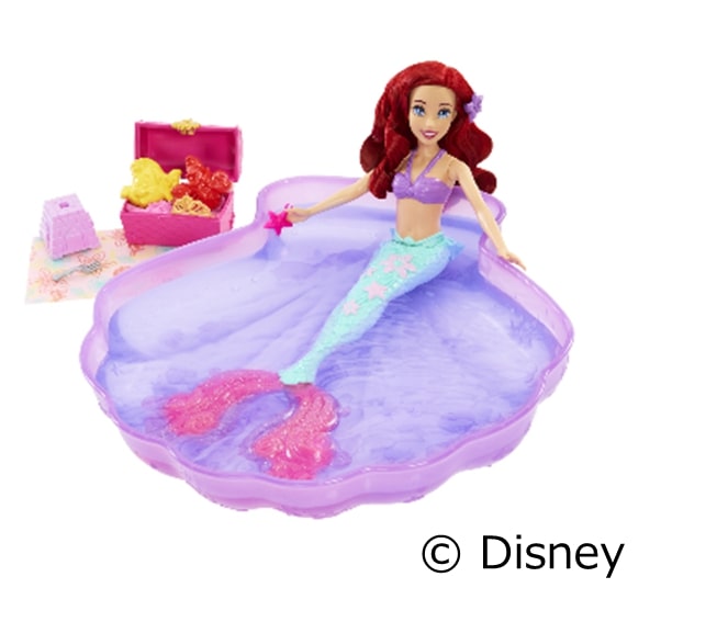 そのほか布製のビーチタオルや、小物をしまうことができる宝箱、「アリエル」の長い髪をスタイリングできるヘアクリップなどがついています。
