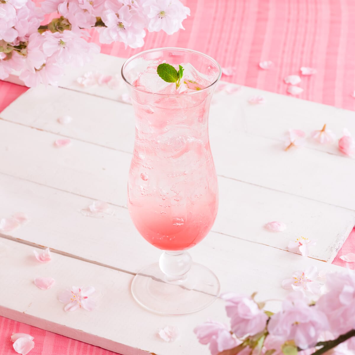 やさしい桜の爽快感が楽しい「桜スカッシュ」もラインナップ。