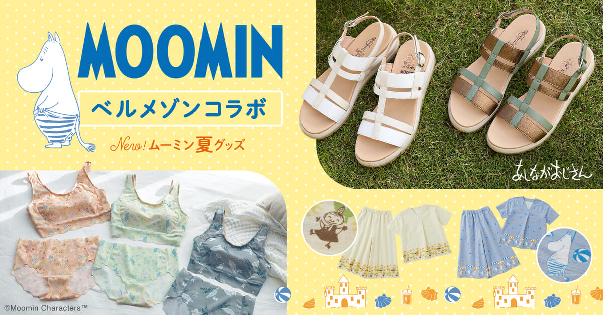 シューズブランド「あしながおじさん」から特別デザインのサンダルが登場するほか、暑い季節を快適に過ごせるインナーウエアやパジャマが「ムーミン」デザインで展開されます☆