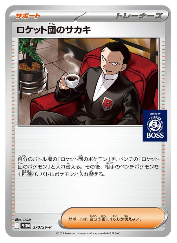 ※「ポケモンカードゲーム スカーレット&バイオレット」シリーズの拡張パック 「ロケット団の栄光」(2025年4月18日(金)発売)に収録される「ロケット団のサカキ」と同じ効果を持つカードです