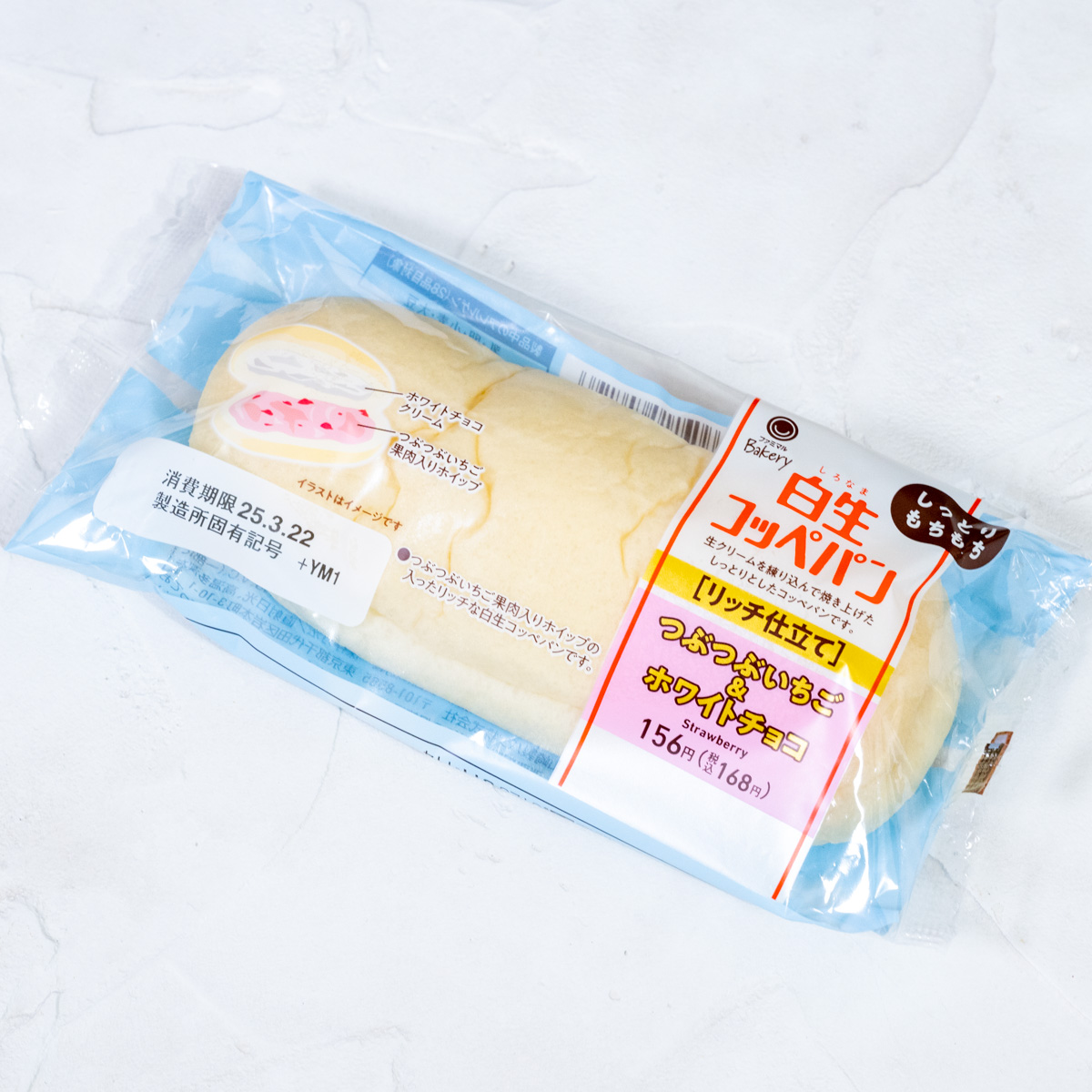 白生コッペパン(つぶつぶいちご&ホワイトチョコ) パッケージ
