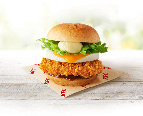 「骨なしケンタッキー」に、目玉焼き風オムレツとアメリカで人気のBBQソースを合わせたバーガーです。