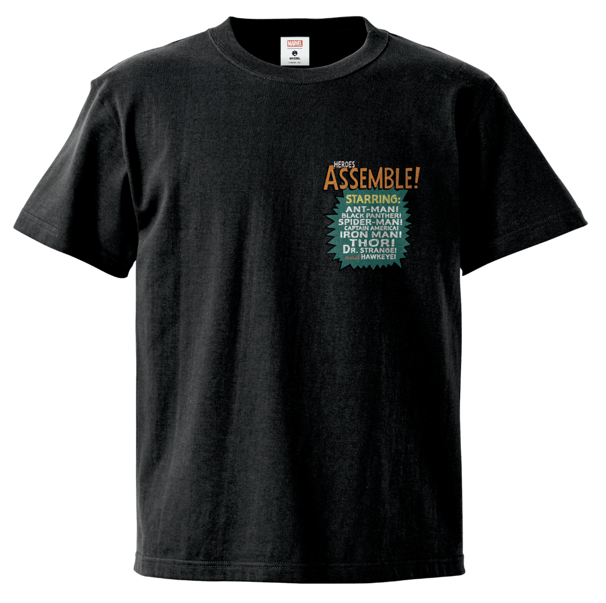 フロント胸部にMARVELヒーローの「アントマン」や「ブラックパンサー」「スパイダーマン」「キャプテン・アメリカ」「アイアンマン」「ソー」「ドクター・ストレンジ」「ホークアイ」