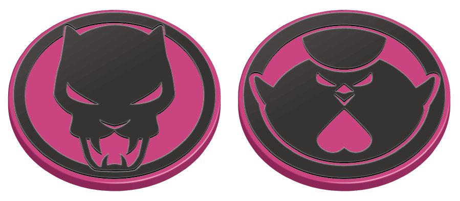 華やかなビビッドピンクに「ブラックパンサー」とNAOYAのアイコンを落とし込んだコースター