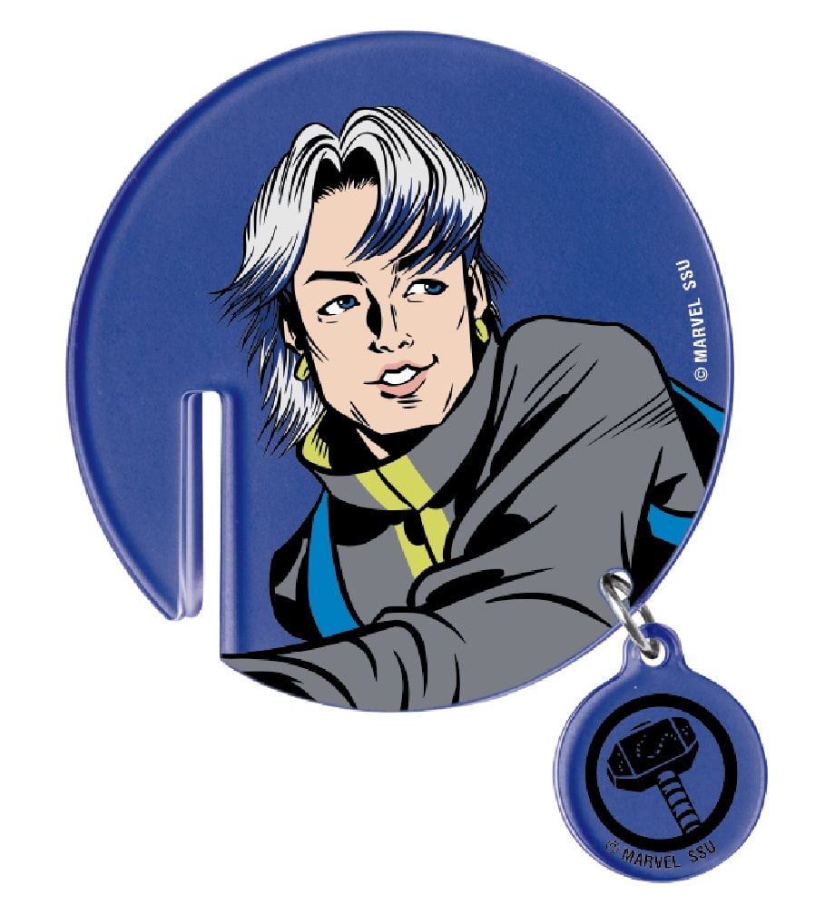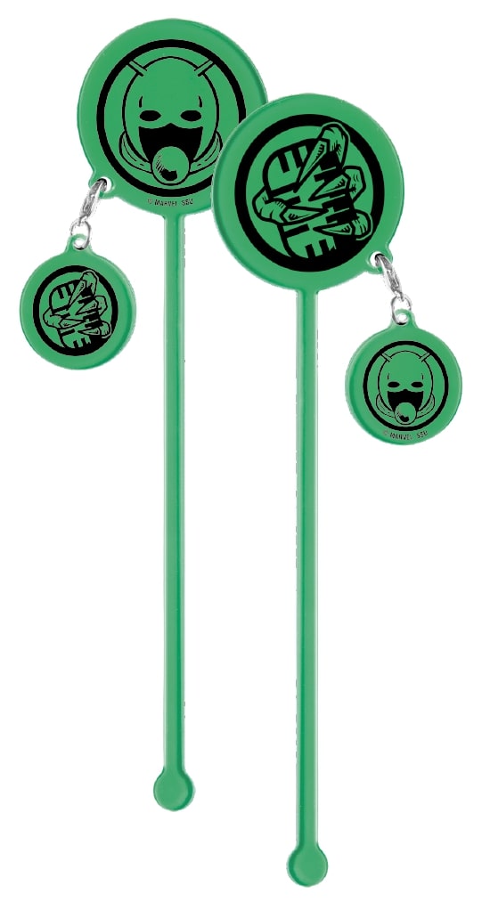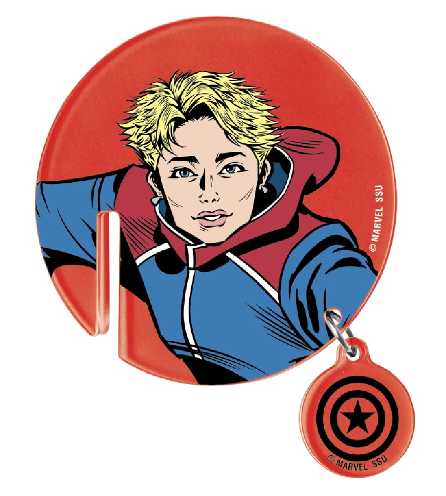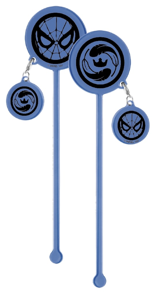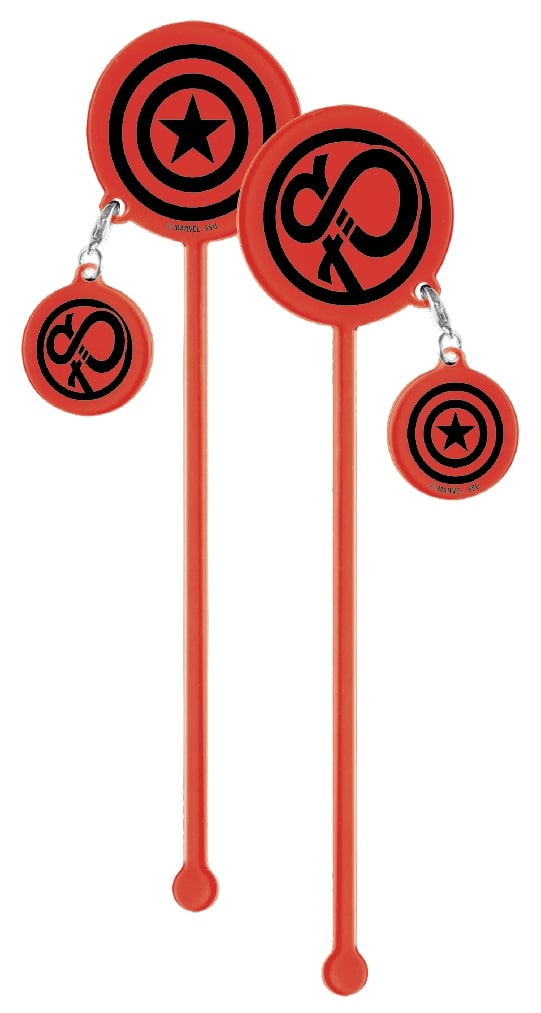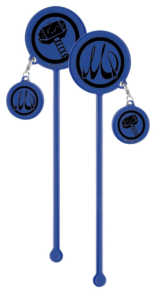 MARVELヒーローのアイコンチャームが付いた、「MAZZEL:COMICSアート」を使⽤したグラスマーカー。