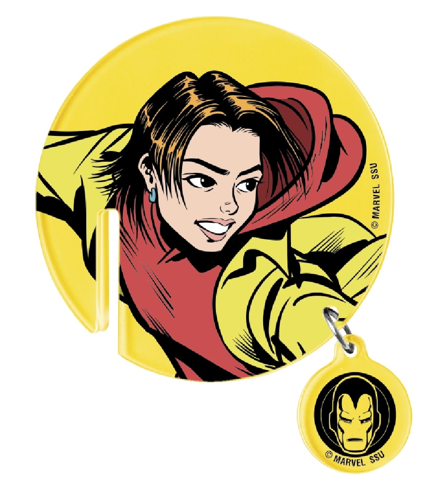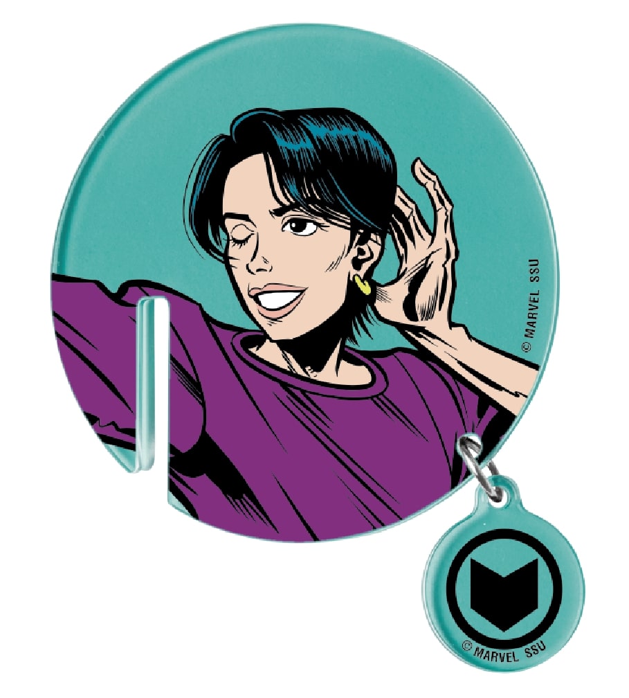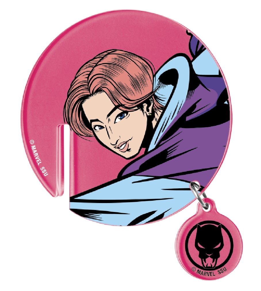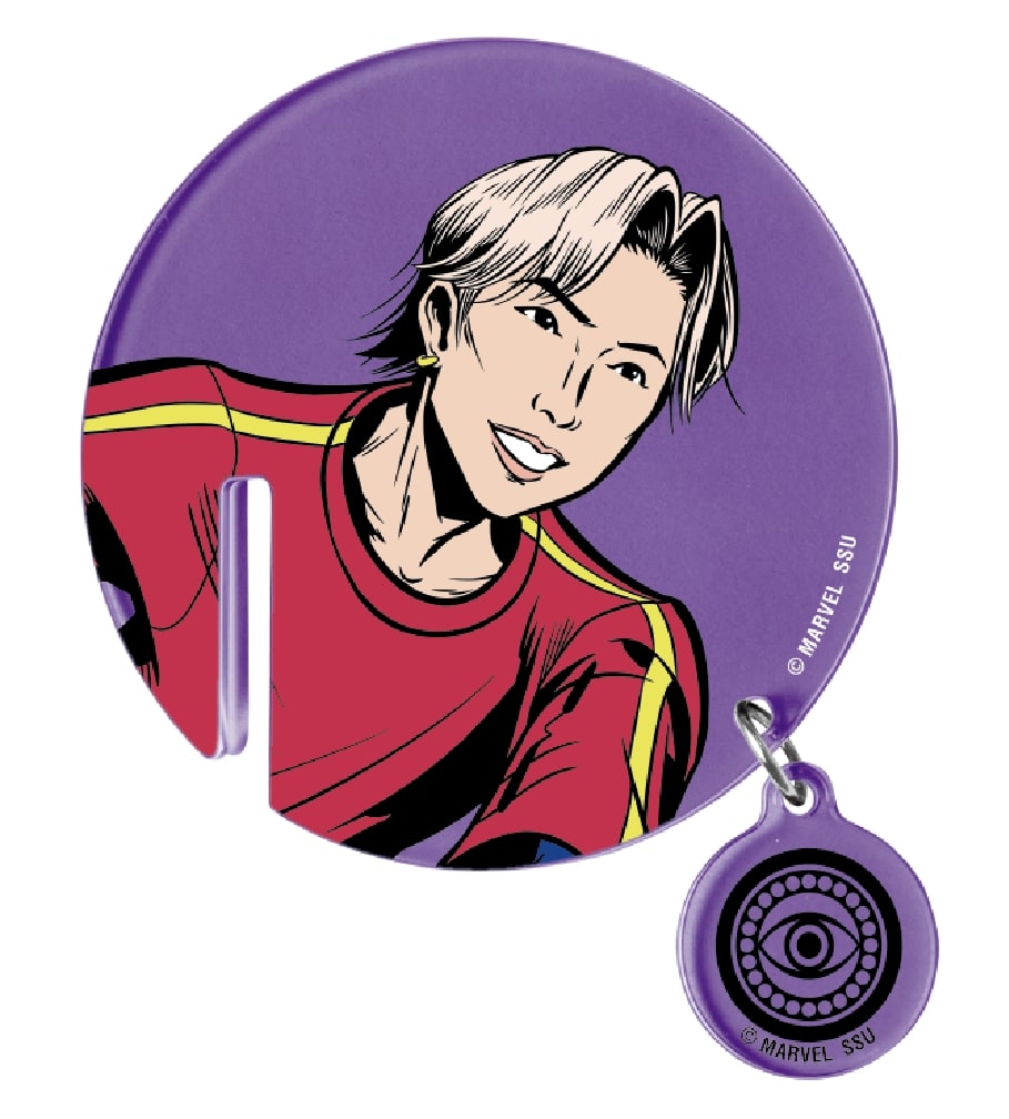MARVELヒーローのアイコンチャームが付いた、「MAZZEL:COMICSアート」を使⽤したグラスマーカー。