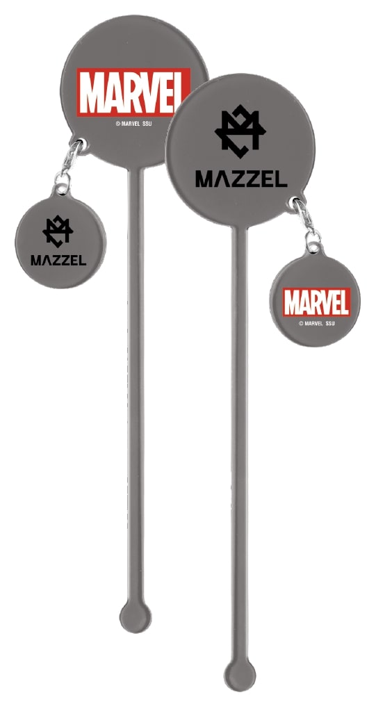 MAZZELとMARVELロゴがあしらわれたグラスチャームが登場します。