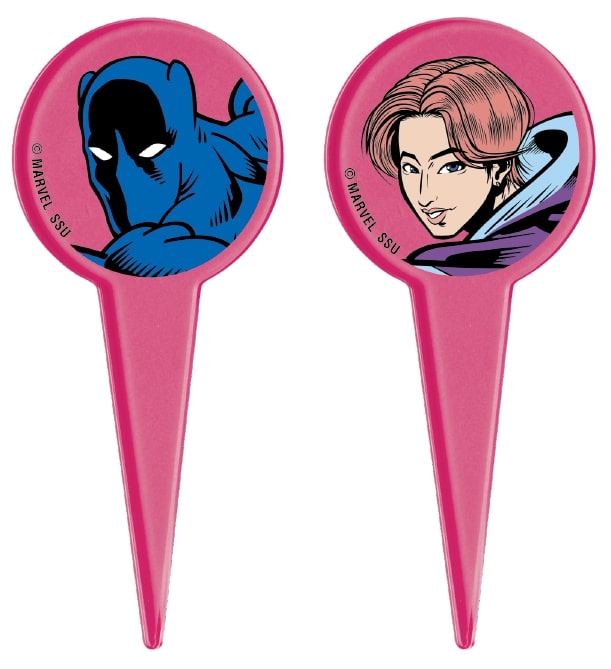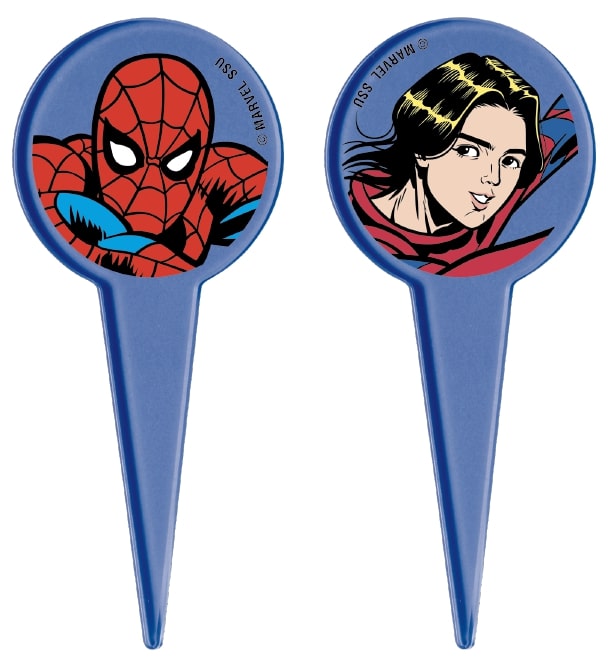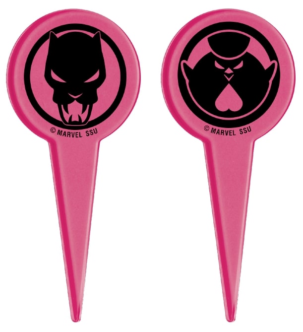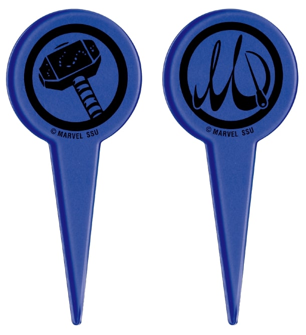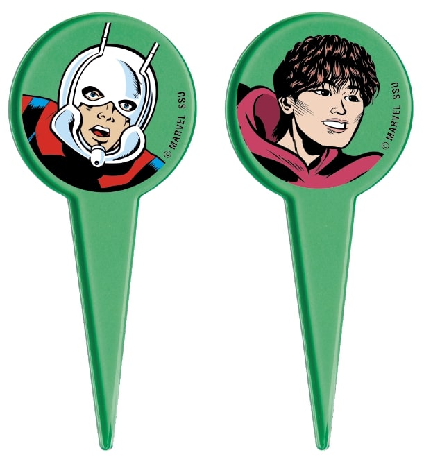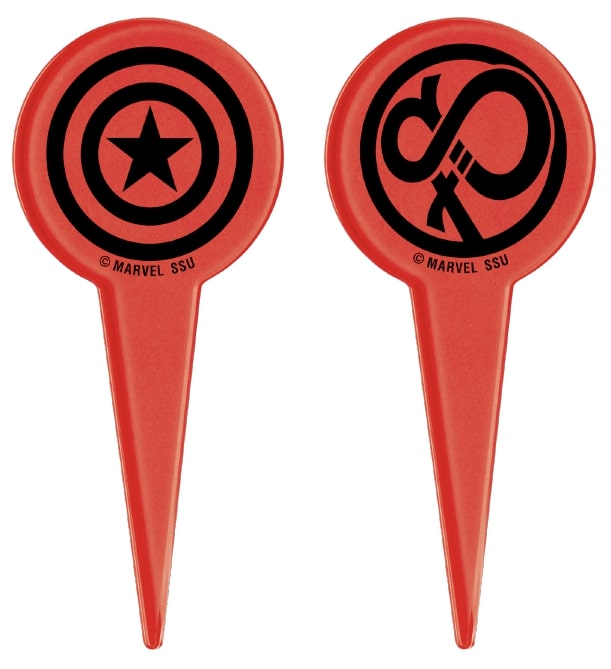 MARVELヒーローとMAZZELの2枚をセットにした、F賞のデザートピックは全部で16種類。