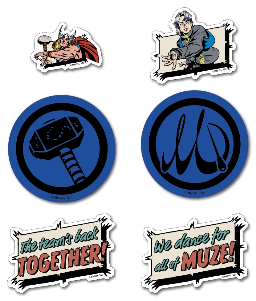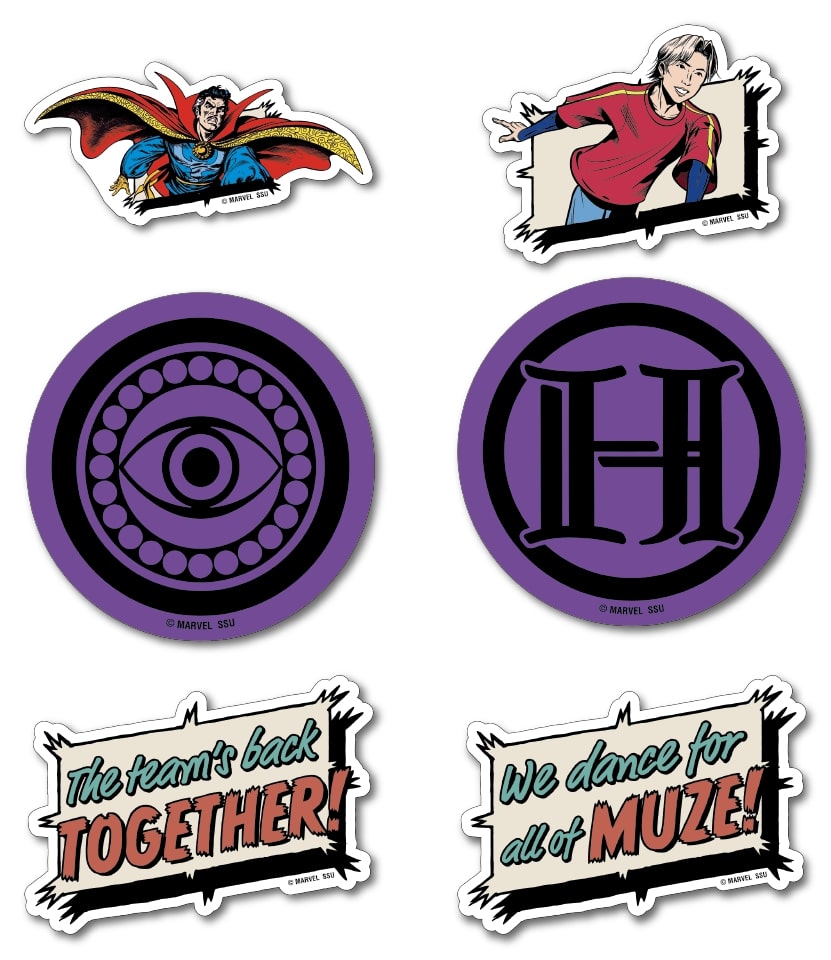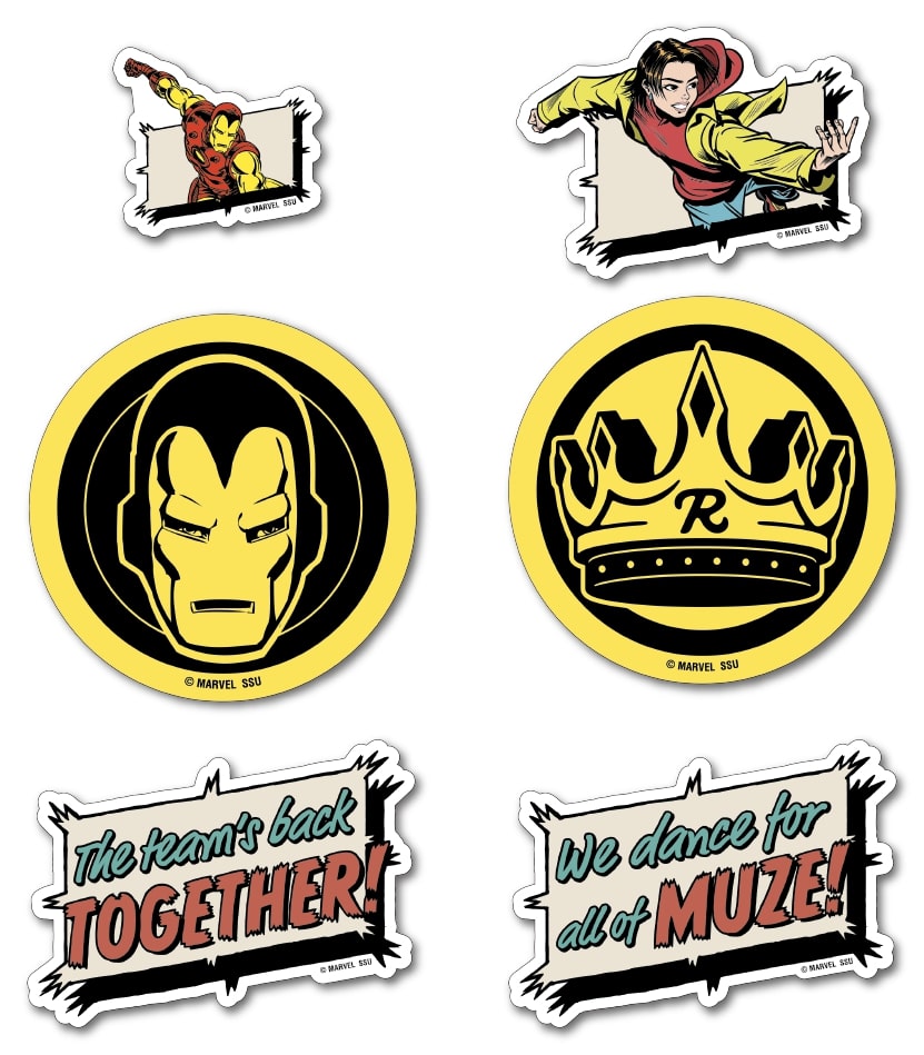 「MAZZEL:COMICSアート」やアイコンなどが1種6枚でセットになったステッカー。