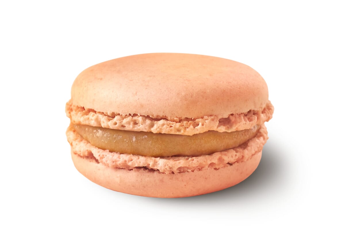 黄桃と白桃の2種類の果汁を使用したフィリングをサンドした「マカロン ピーチ&ピーチ」
