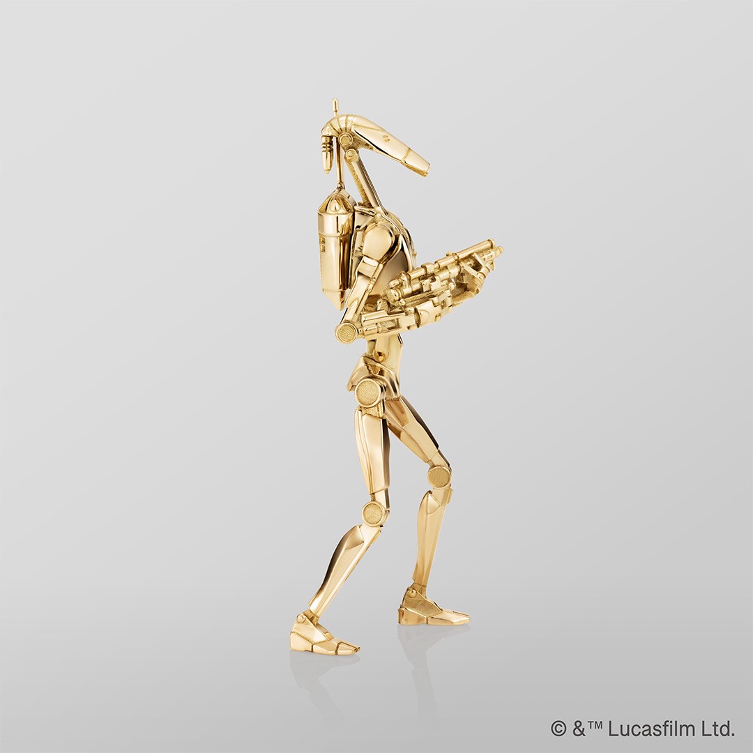 「グローグー」や「ダース・ベイダー」など、人気キャラクターたちの純金のスタチューやジュエリーがラインアップ。