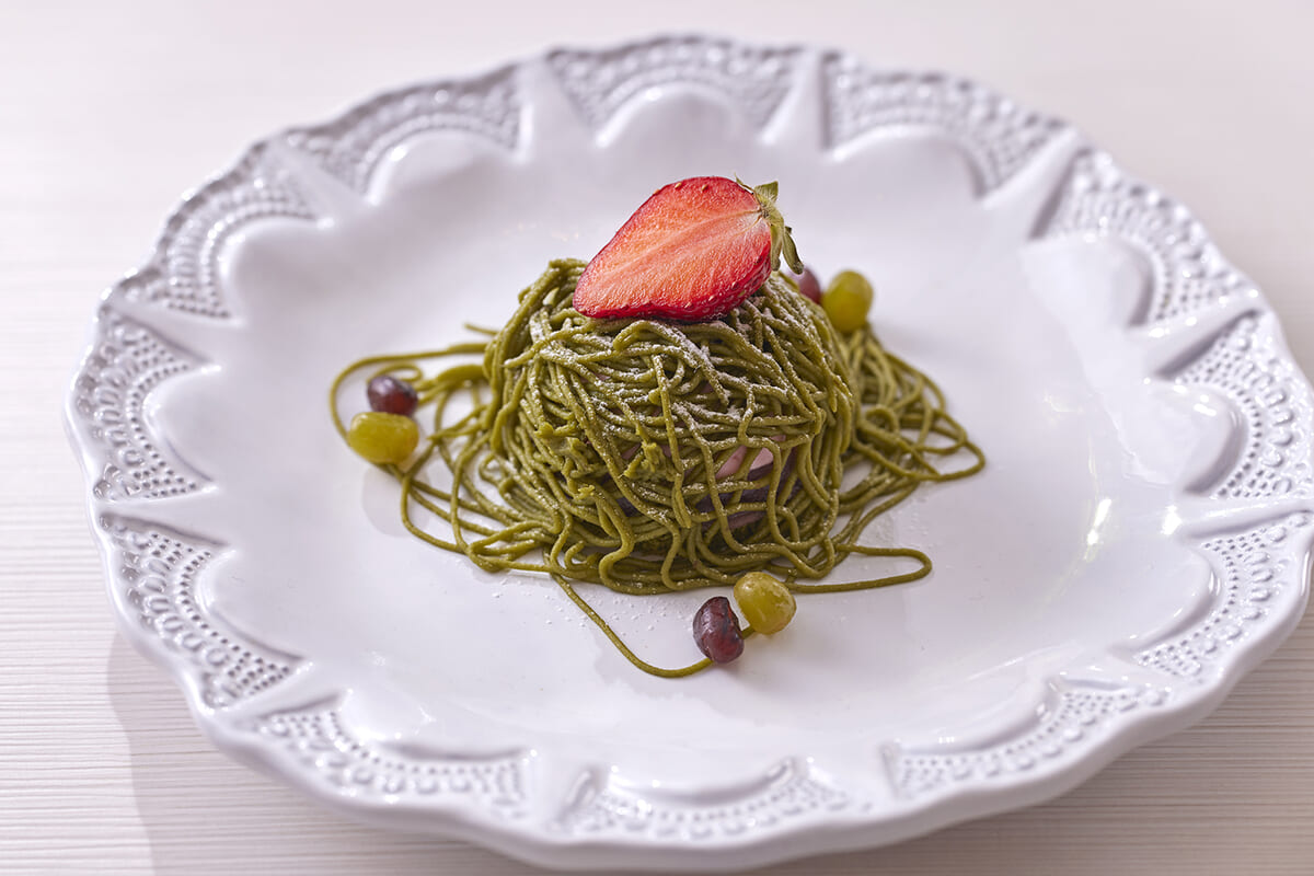またデザートには、パティシエ特製の「しぼりたて抹茶モンブラン」も。
