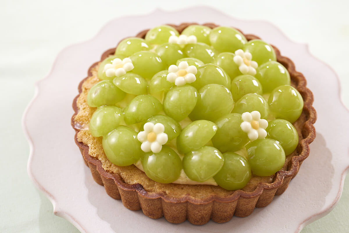 「グリーンぶどうのタルト」などの華やかなスイーツがバラエティ豊かに並びます。