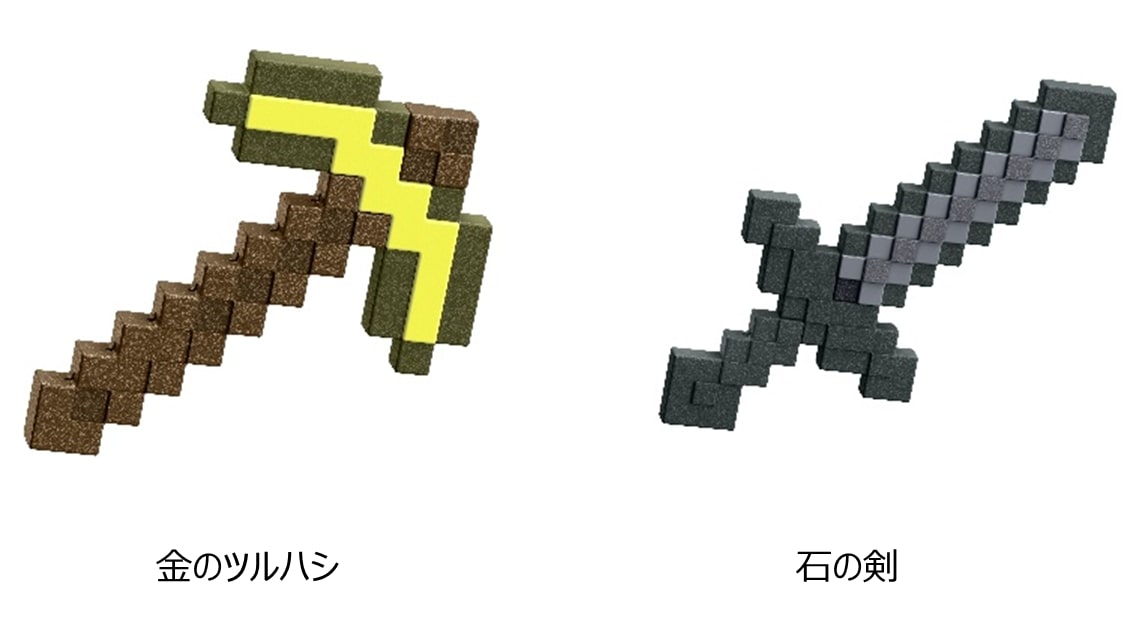 ゲームに登場する、マインクラフトファンならだれもが知っている武器「金のツルハシ」と「石の剣」