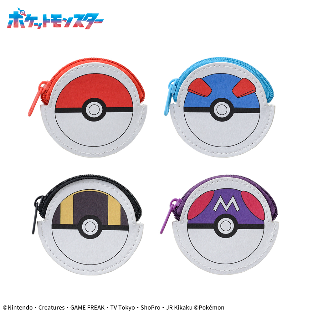 モンスターボール・スーパーボール・ハイパーボール・マスターボールデザインの小さなポーチ。