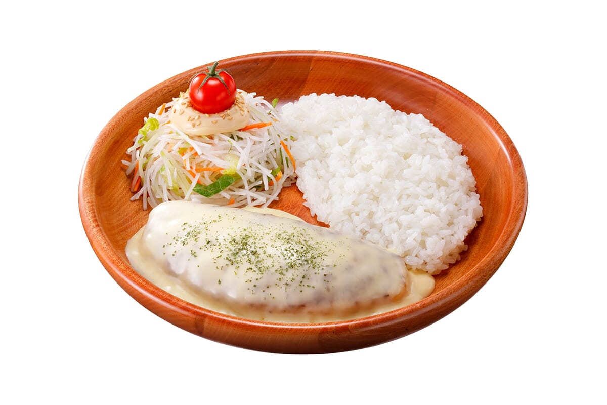 たっぷりイエローチーズソースで覆い尽くされたハンバーグは、心ゆくまでチーズの旨味と風味を味わえるメニューです。