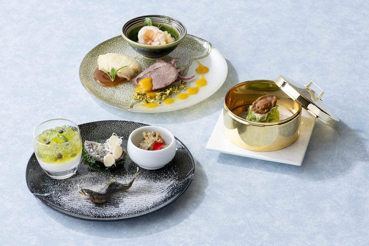 ・黄(こう)シェフの点心「鮑のシューマイ」(右上)