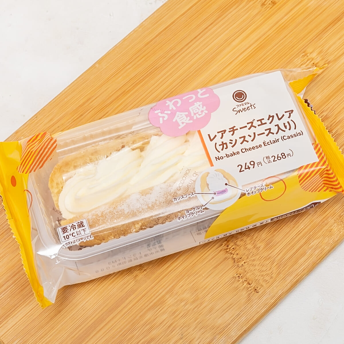 ふわっと食感のレアチーズクリームと、くちどけの良いシューパフを楽しめる「レアチーズエクレア」