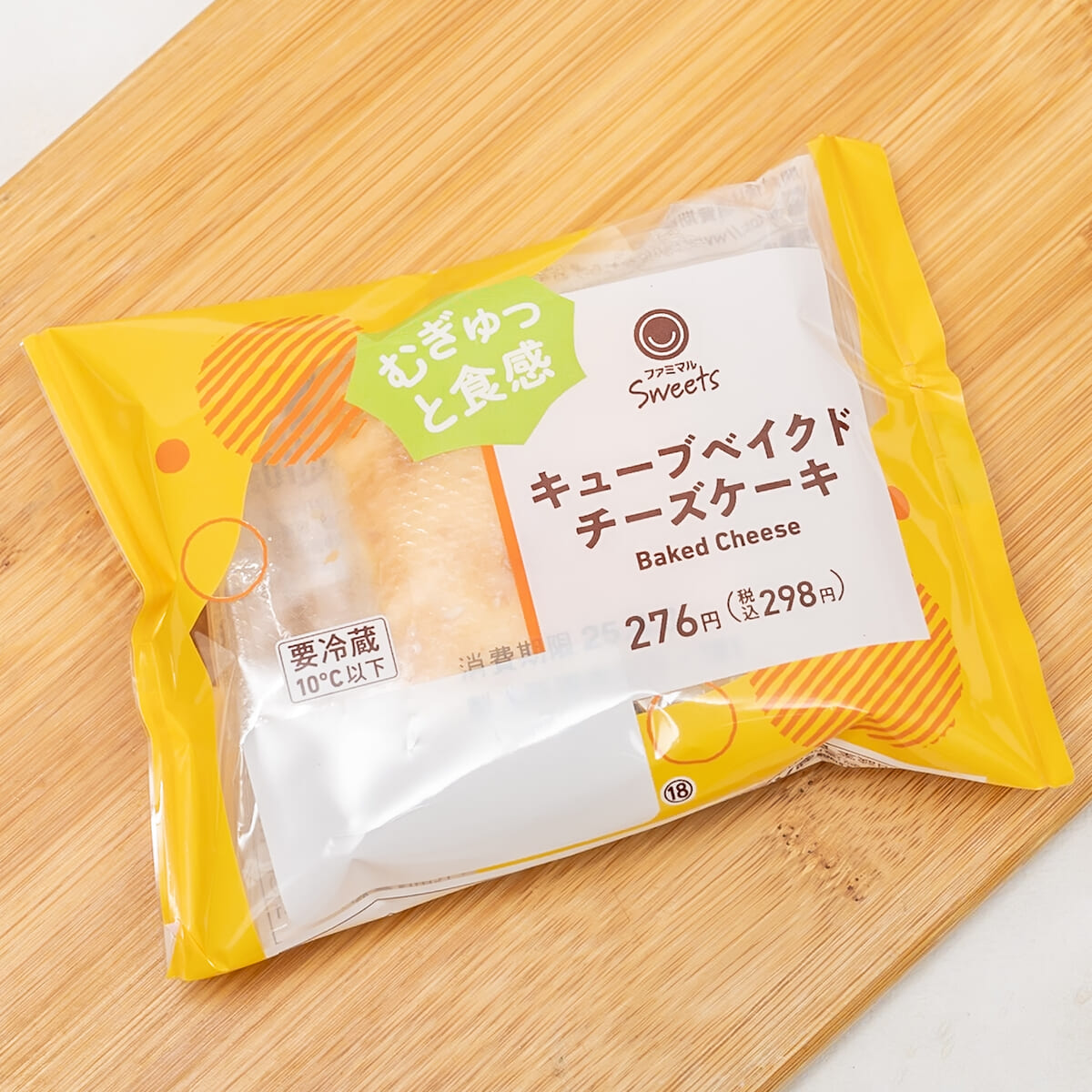 スポンジ生地にベイクドチーズケーキをのせた2層のチーズケーキをキューブ型にした「キューブベイクドチーズケーキ」