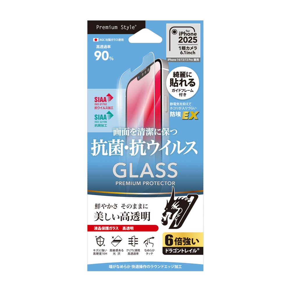 抗菌、抗ウイルス仕様の iPhone 16e/iPhone14/iPhone13/iPhone13 Pro兼用 液晶保護ガラスが、3種類ラインナップ。