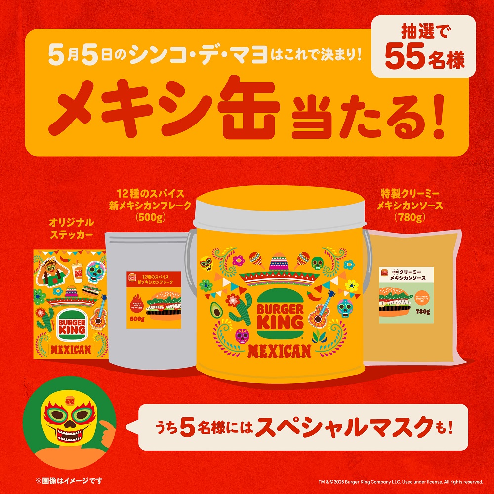 また、当選した55名のうち、ラッキーな5名には「バーガーキング スペシャルマスク」もプレゼント。