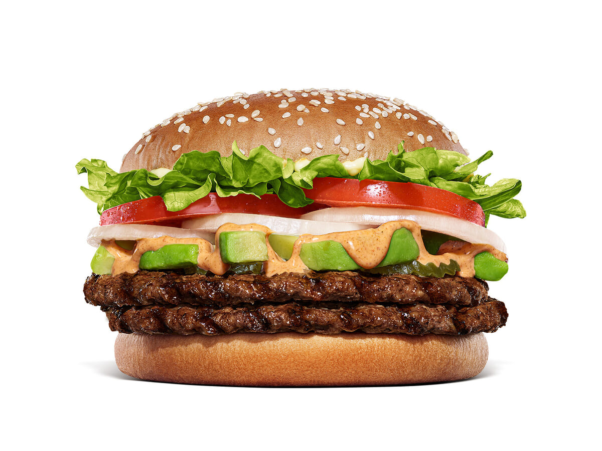 直火焼きの100%ビーフパティ2枚を使った、ボリューム満点な「ダブルクリーミーメキシカン アボカドワッパー」