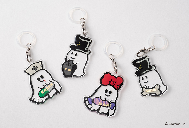 おばけちゃんに名前を入れて、あなただけのオリジナルチャームを作れます。