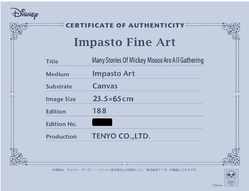 「インパストファインアート」には品質と価値を保障するものとして、ナンバー入りの証明書が発行されます。