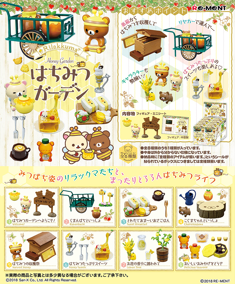 ミニフィギュア「リラックマ はちみつガーデン」(全8種)は、コンビニ、スーパー、玩具、雑貨店などで発売中です☆