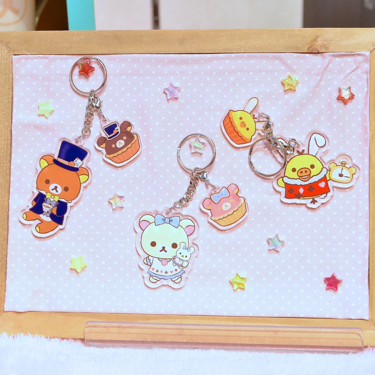チェシャ猫風「リラックマ」や「コリラックマ」「キイロイトリ」がデザインされた「アクリルキーホルダー」