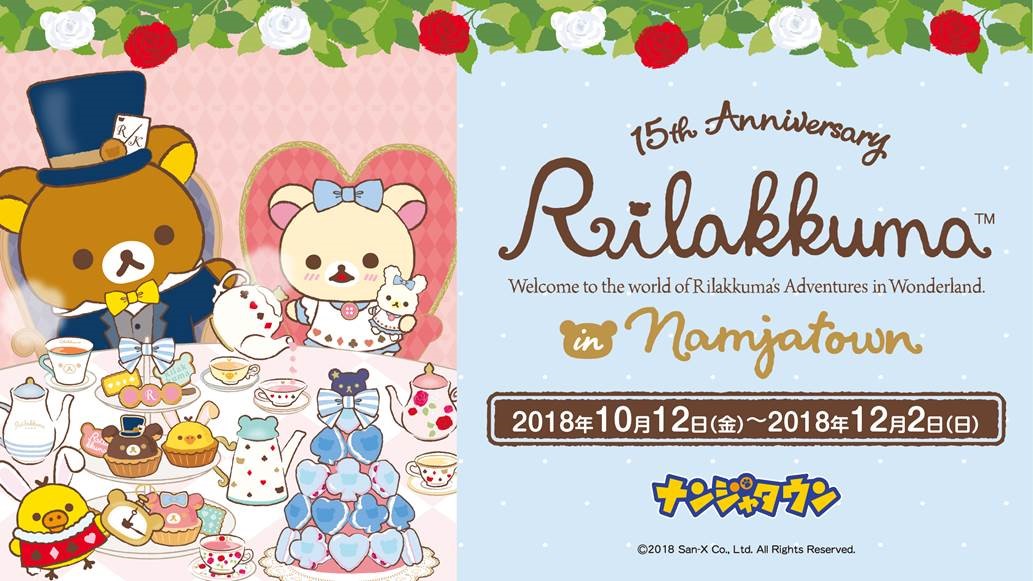 2018年10月12日(金)から12月2日(日)の期間『不思議の国のリラックマ』イベント「リラックマ15th Anniversary in ナンジャタウン」を開催中です。