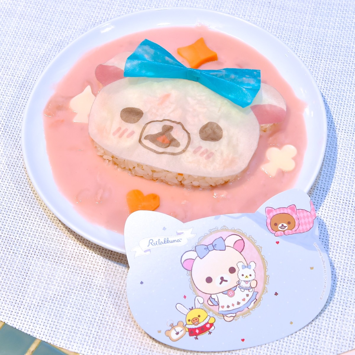 優しいピンク色のシチューと「コリラックマ」がミックスした、愛らしいフードメニューです☆